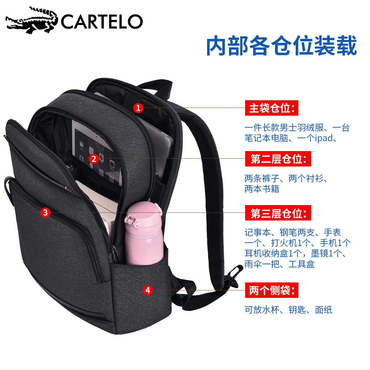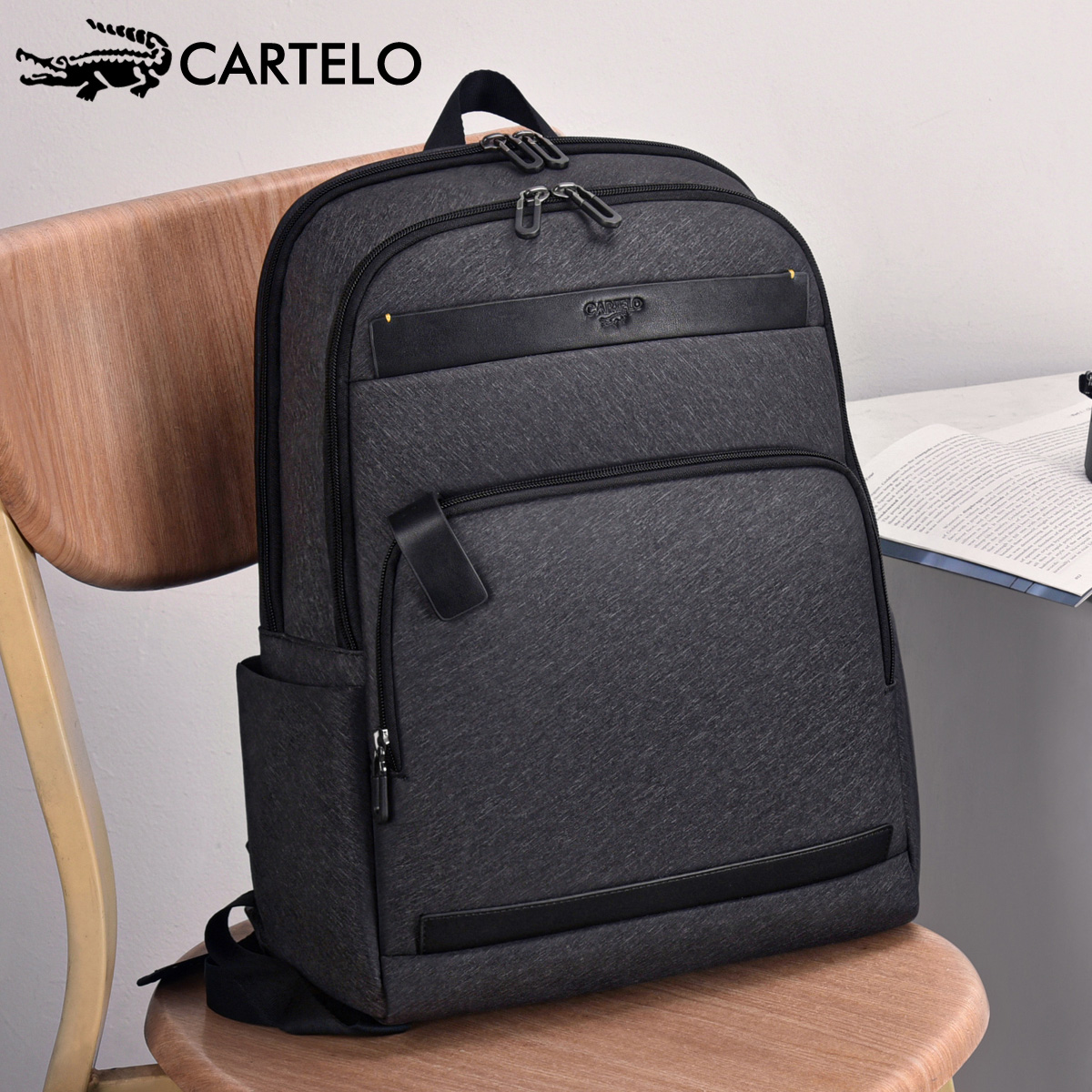 Cartelo crocodile shoulders widened anti-theft backpack men's trendy ins large-capacity simple student travel computer bag