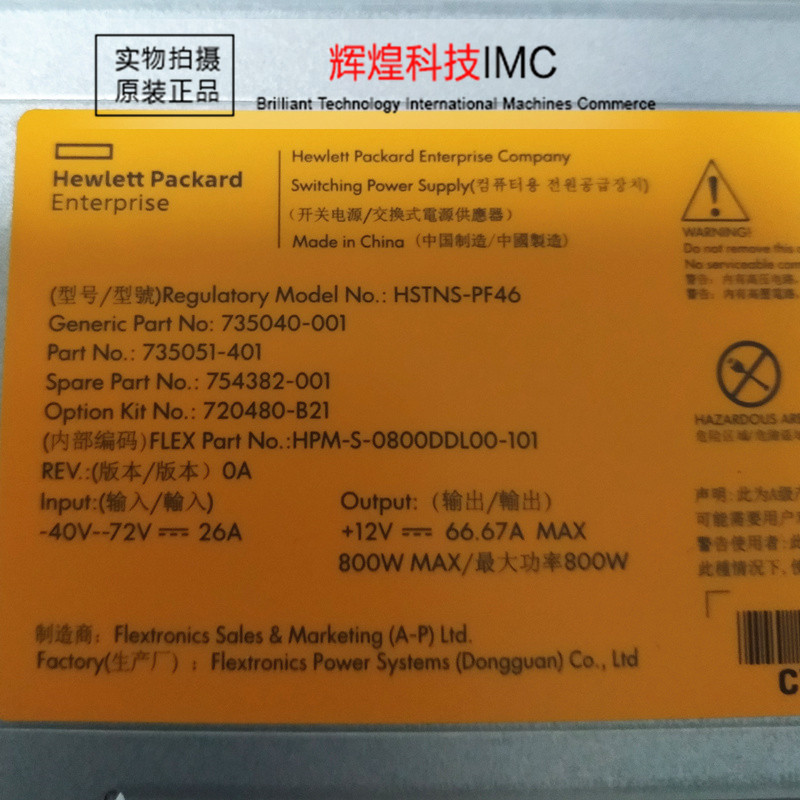 HP G9 800W DC HSTNS-PF46 735051-401 720480-B21 754382-001
