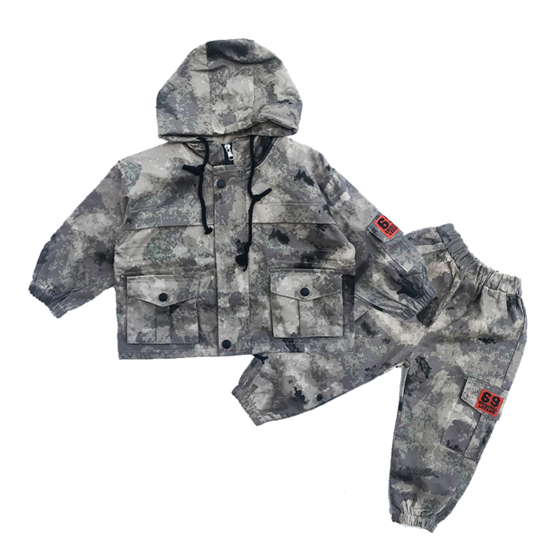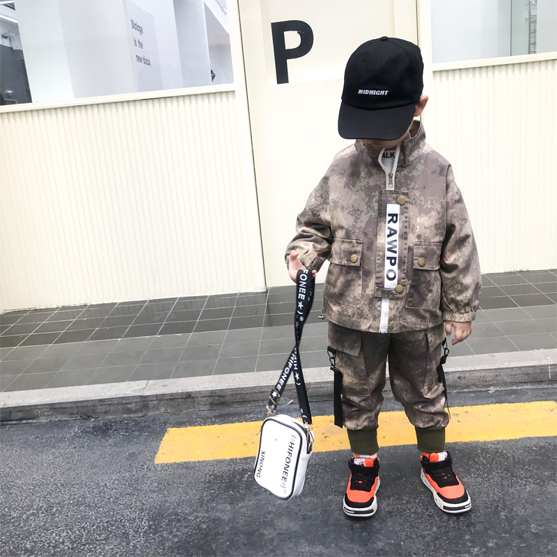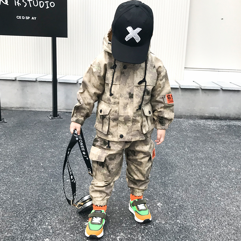 Boys' autumn camouflage sports suit 2022 children's new autumn boy's tooling and eating chicken two-piece children's clothing trend