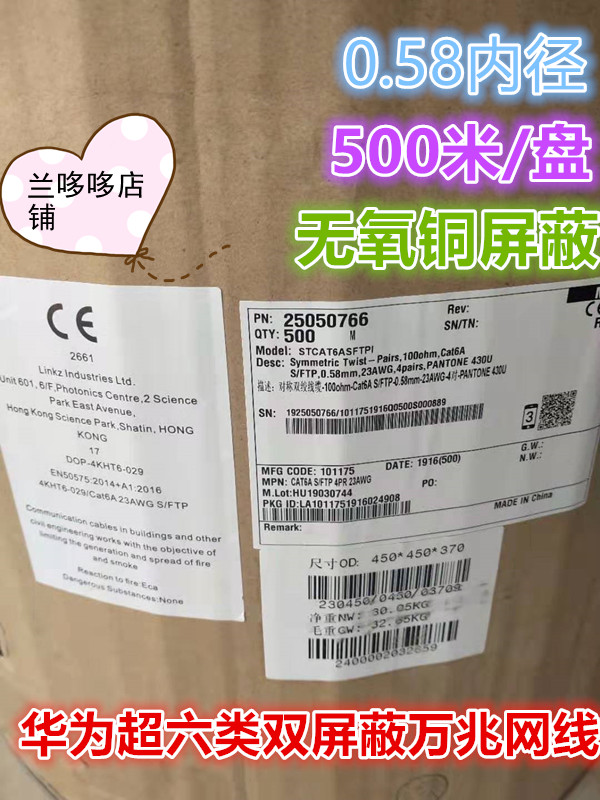 Huawei's 6-pair screen cover 6 categories of net wire tengabit shielded network line 500 m CAT6A 0 58mm