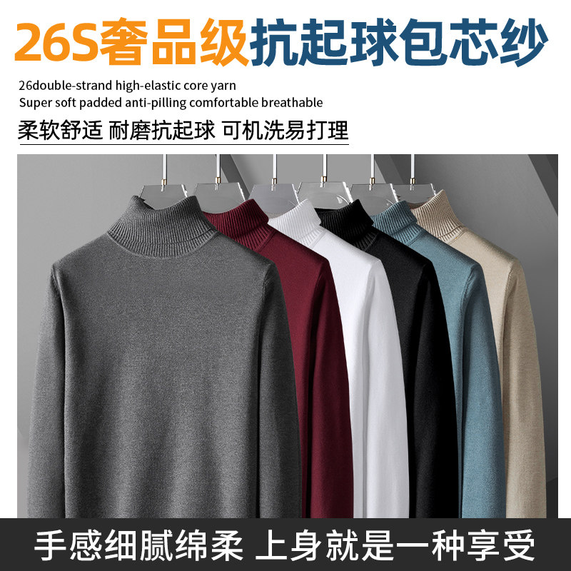 2022 autumn and winter new turtleneck sweater men's knitted bottoming shirt long-sleeved spring and autumn black warm sanitary clothing trend inside