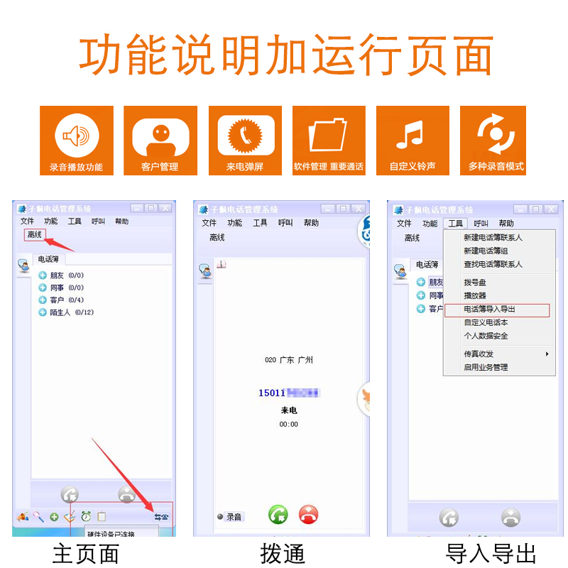 Telephone USB recording box incoming call pop-up screen computer software dial call record query system secondary development