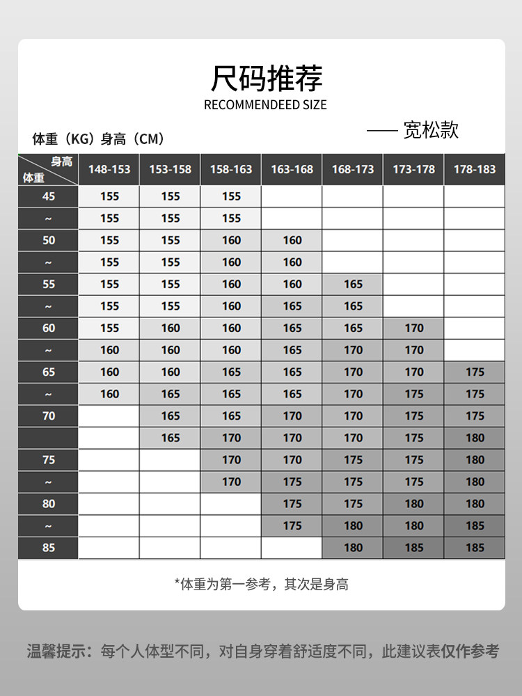 165 88A 170 92A 175 96A 155 80A 160 84A 180 100A 185 104A 19