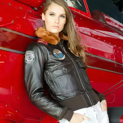 USA native Cockpit G1 female Aviator leather jacket lambskin TOPGUN G-1 motorcycle jacket leather jacket