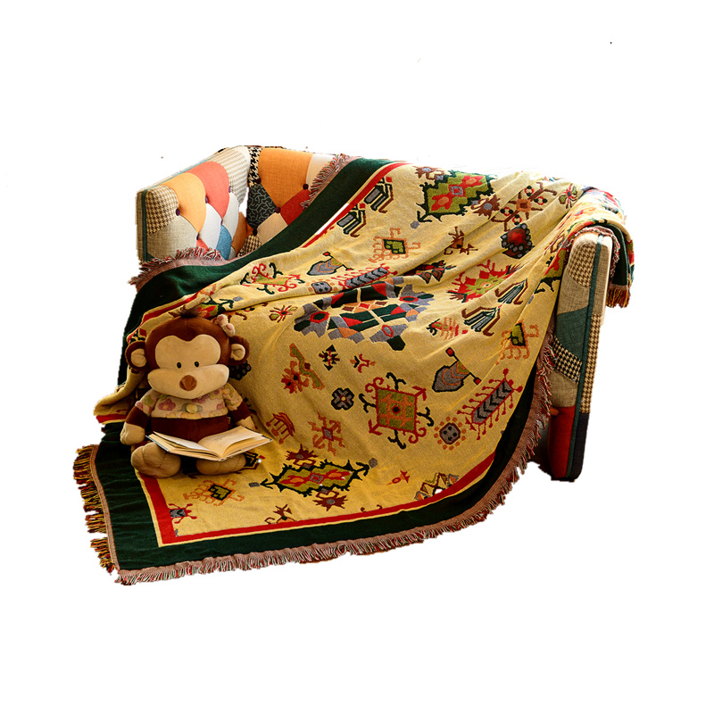 Hidden Wind Cotton Hemp Thread Blanket Sofa Towels Cover Full Cover West Area Customs Table Cloth Carpet Living-room Geb Bifacial Sofa Cushion