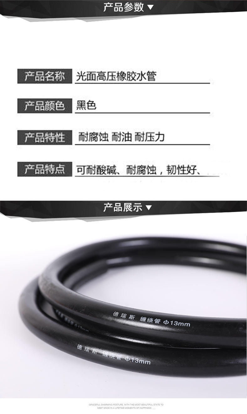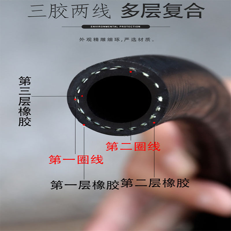 Glossy rubber water pipe high pressure hose explosion-proof wear-resistant pressure resistant tubing air vapor hydrophobic hose 4 minutes 6 points