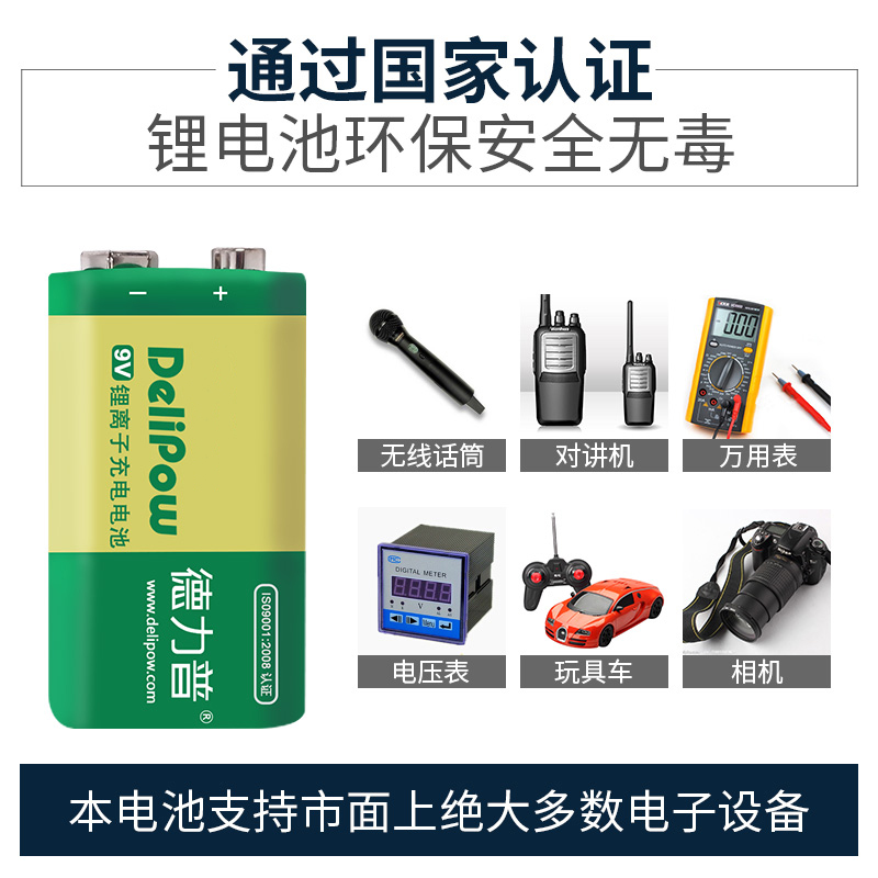 Delip 9V rechargeable battery 9V550 lithium battery large capacity 6F22 microphone battery microphone multimeter