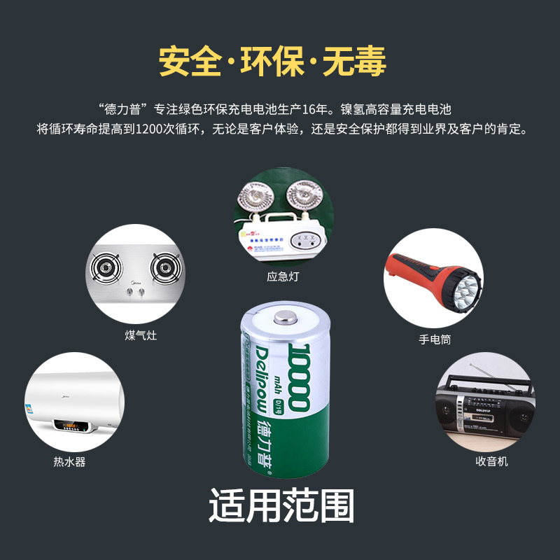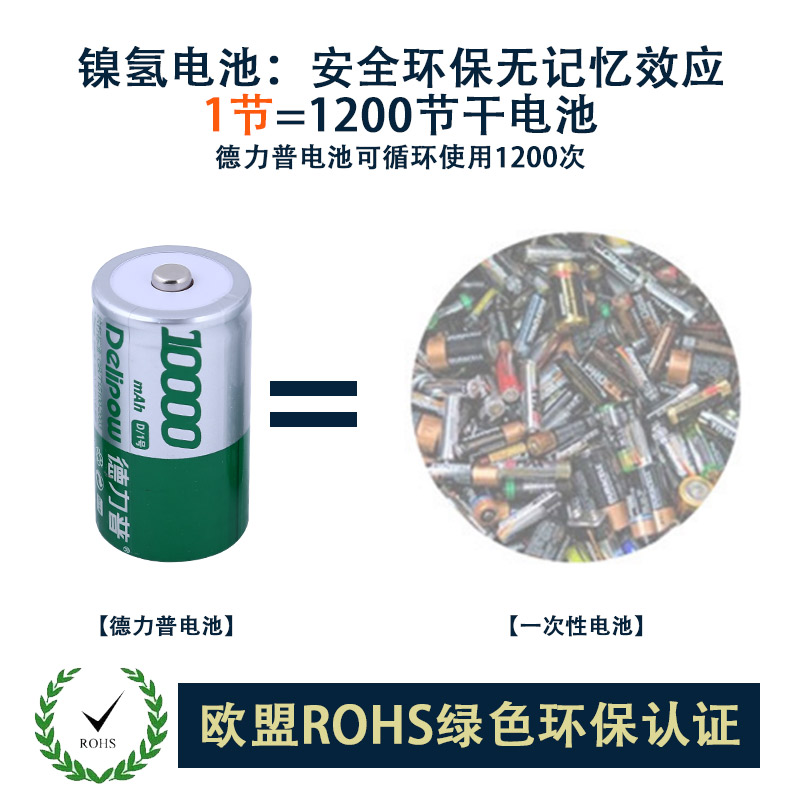 delipow 1 hao rechargeable battery 1 hao battery charger set D-type battery capacity 10000 mA