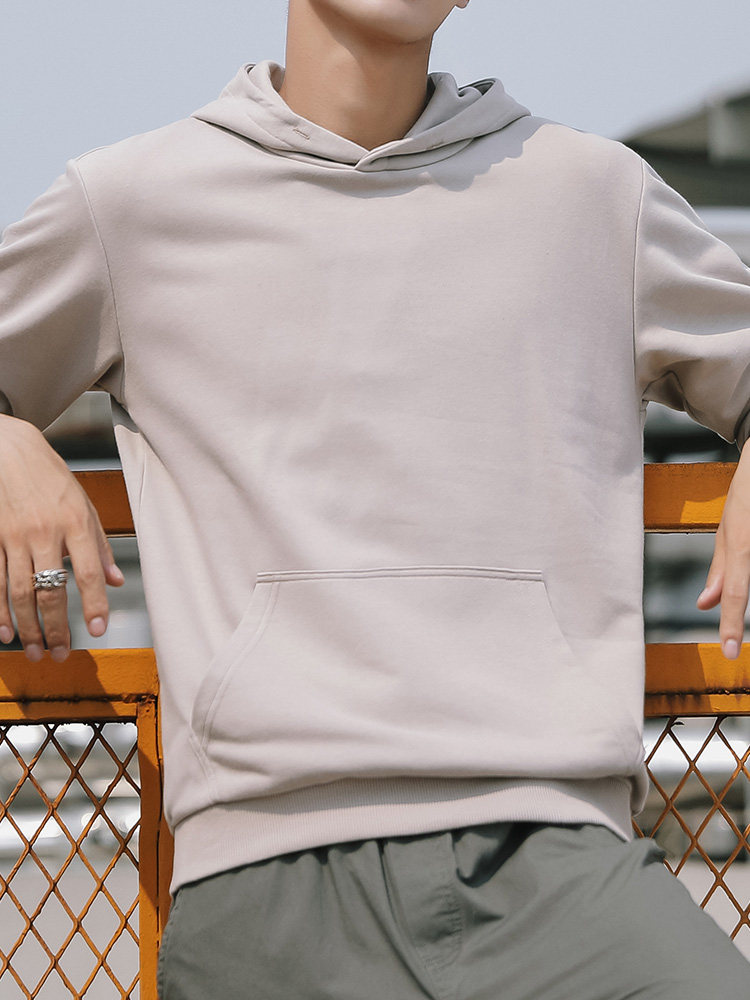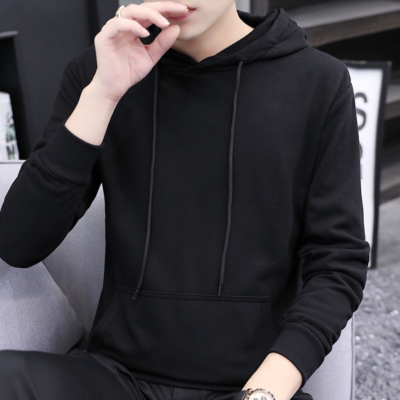 New long sleeve thick cotton T men's hat sleeve head round collar pure color lovers thin trend Korean version casual autumn and winter cash male tide