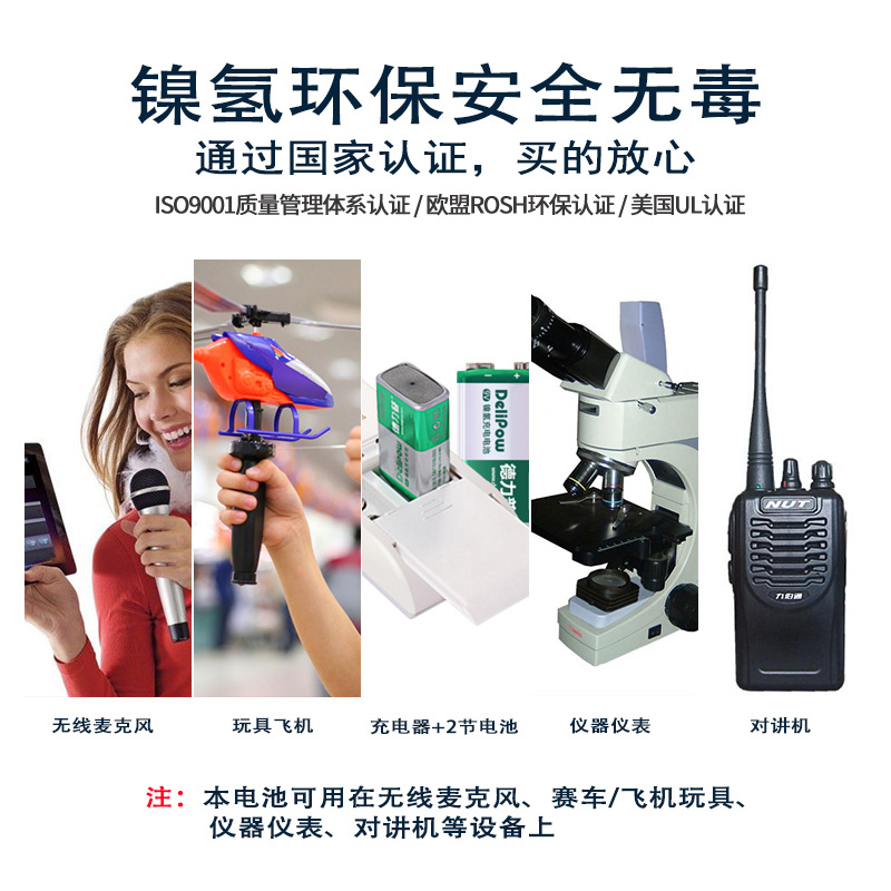 Delip 9V350 rechargeable battery suit microphone Jiuvolt battery Wanton with electricity meter 2-section rechargeable intelligent quick-charge
