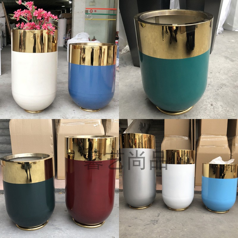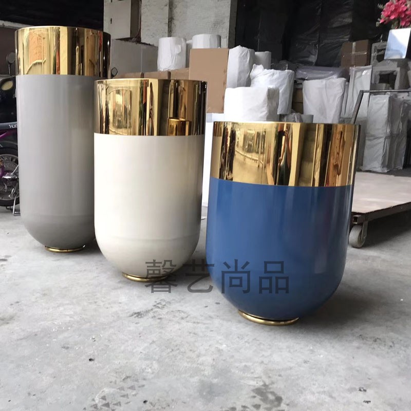 Stainless Steel Vases Floor Metal Flower Pots Parquet Color Flower Bowl Beauty Chen Bicolor Vase Minima house modern "