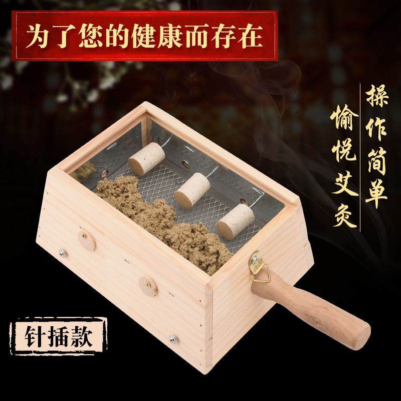 Wooden moxibustion box household smokeless and moxibustion wood six holes ginger insulation wood moxibustion box General body moxibustion moxibustion device