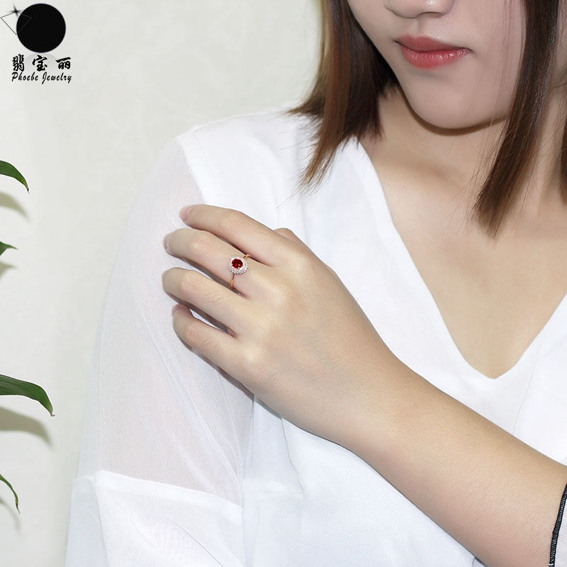 Bright Natural Pigeon's Blood Ruby Double-Layered Diana Style Ring 18K Rose Gold Diamond Color Gold Women's Ring Customization
