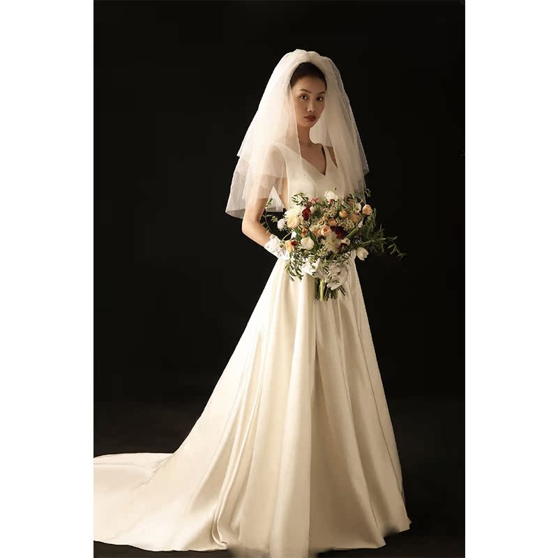 Waist satin light wedding dress main yarn temperament noble princess Tutu trailing the end of the bride wedding out of the yarn Virgin