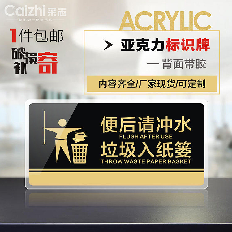 After the acrylic then please flush the water forward a small step of civilization a great step make-up room Toilet Slogan Cozy Reminder Board Wall Sticker Please save water paper Don't throw litter logo ID cards Custom