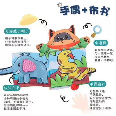 (Edutainment Gift Box) 2-in-1 three-dimensional hand puppet cloth book-Jungle Adventure (Gift Box Set) Hand puppet cloth book Basic 6 Rattles 4-piece Set