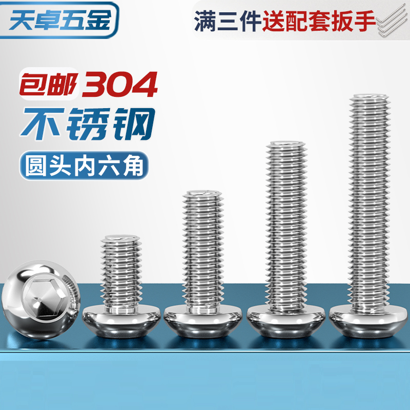 304 Stainless Steel Disc Head Round Head Mushroom Head Semicircle Head Round Cup Inner Hexagon Screw Bolt M2M3M4M5-M12-Taobao