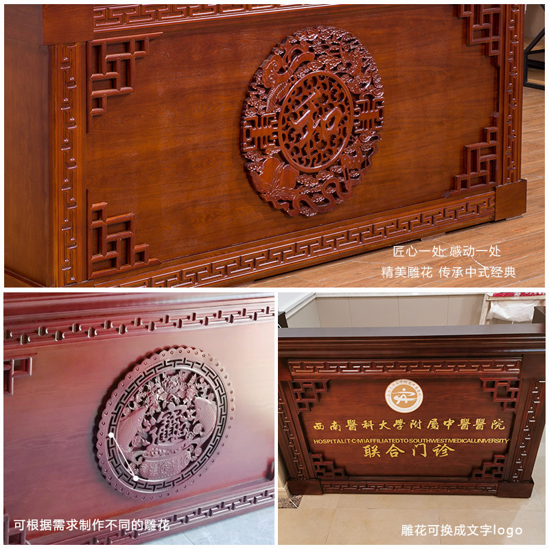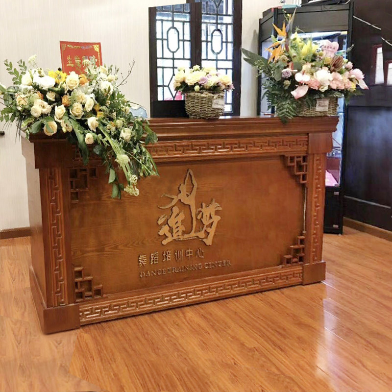 New Chinese bar Counter Collection Silver Counter Retro Solid Wood Tea Building Noodle House Yoga Hall Reception Desk Wellness Hall Front Desk Counter
