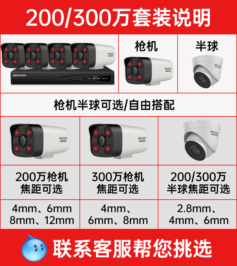 Hikvision surveillance camera lens equipment set 2 million 300w HD Network POE Shop commercial outdoor