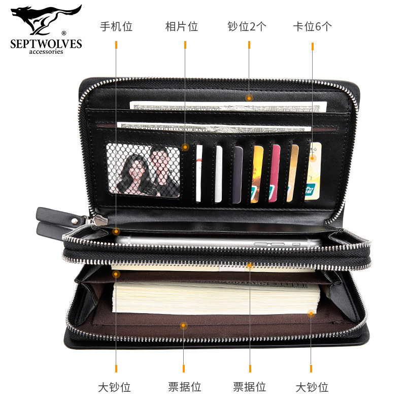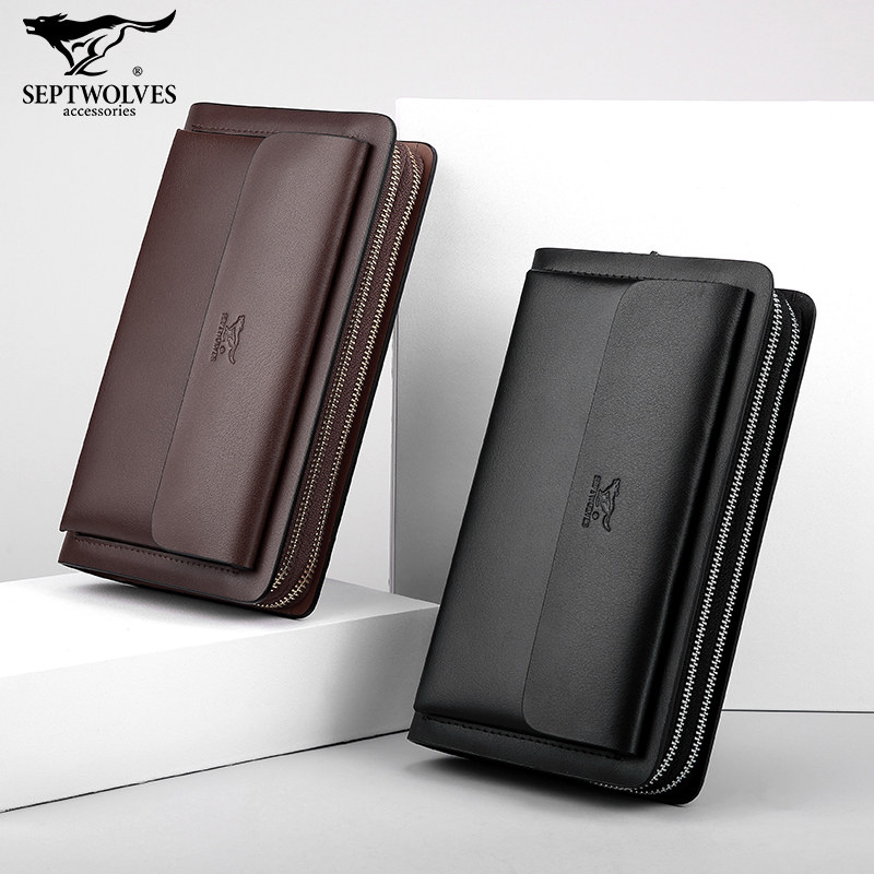 Seven wolves men's wallet big capacity bag 2021 new hands with double pull chain genuine leather wallet daddy long version genuine leather