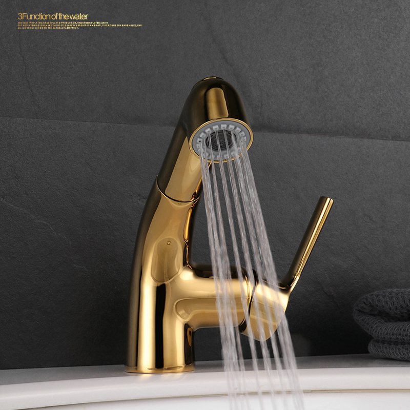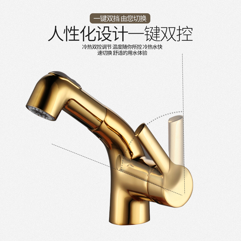 Nordic all-copper bathroom face basin pull-out black tap washbasin hot and cold gold European-style tap home