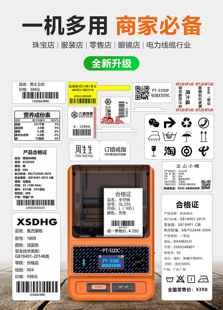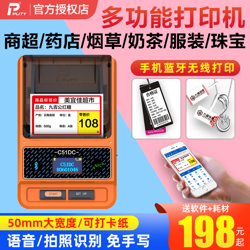 Common sticker C51DC commodity price label printer portable supermarket shelf label tobacco and alcohol clothing tag certificate jewelry food pharmacy thermal self-adhesive sticker price label printer