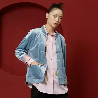 (Mustard original) Jun Tian Chinese style color color short coat stand collar buckle retro modified velvet Tang suit women