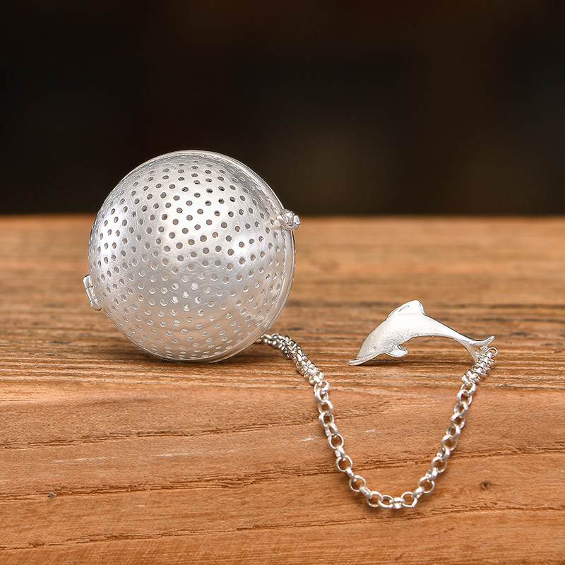 Guiyintang sterling silver 999 tea bubble creative dolphin tea ball tea leak teapot filter tea set accessories silver tea filter