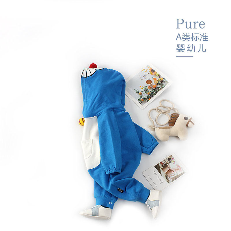 Baby jumpsuit spring and autumn pure cotton baby ha clothes cute super cute outside clothes climbing clothes tide cartoon three or six months