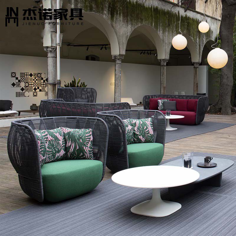 Sofa chair Single sofa high back sofa double sofa sofa lying bed foot 60 marble white tea several black tea table black dining table black tables made hemp rope