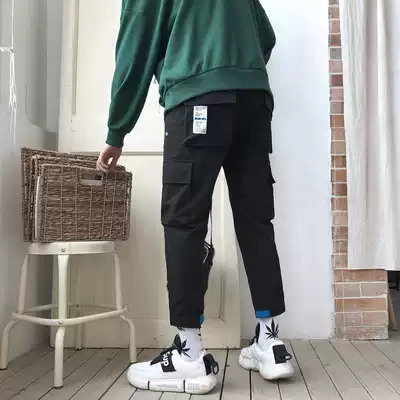Autumn and spring black overalls men's trend brand loose straight casual pants Korean version of the trend 2021 all-match boys pants