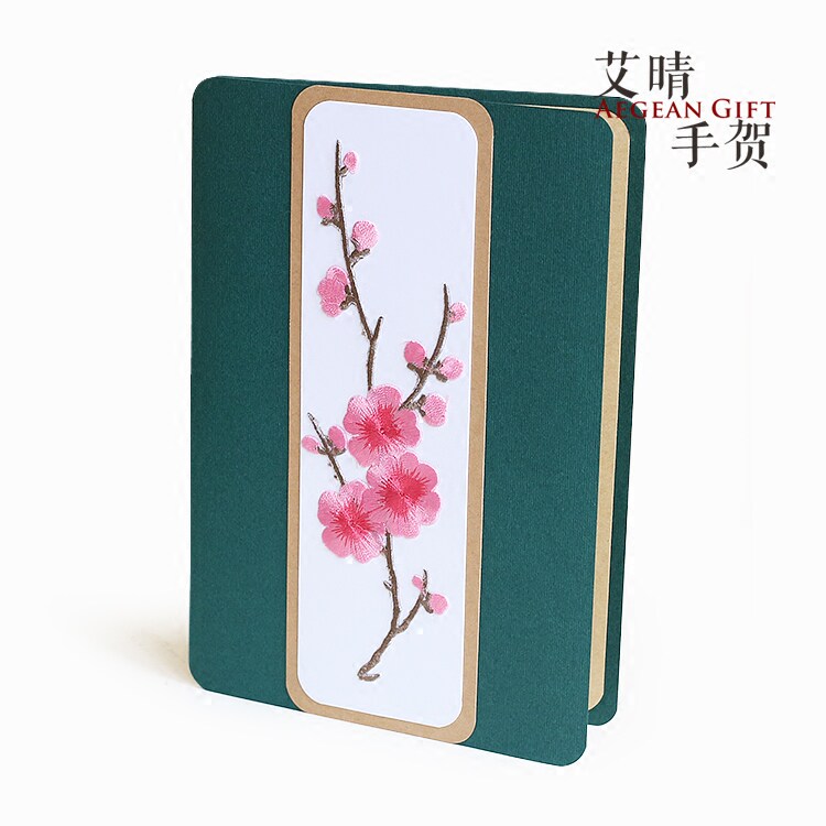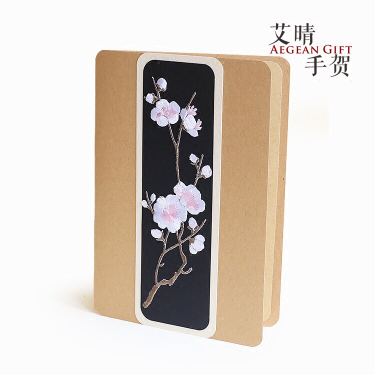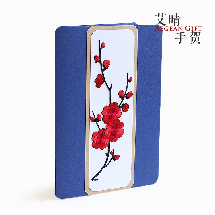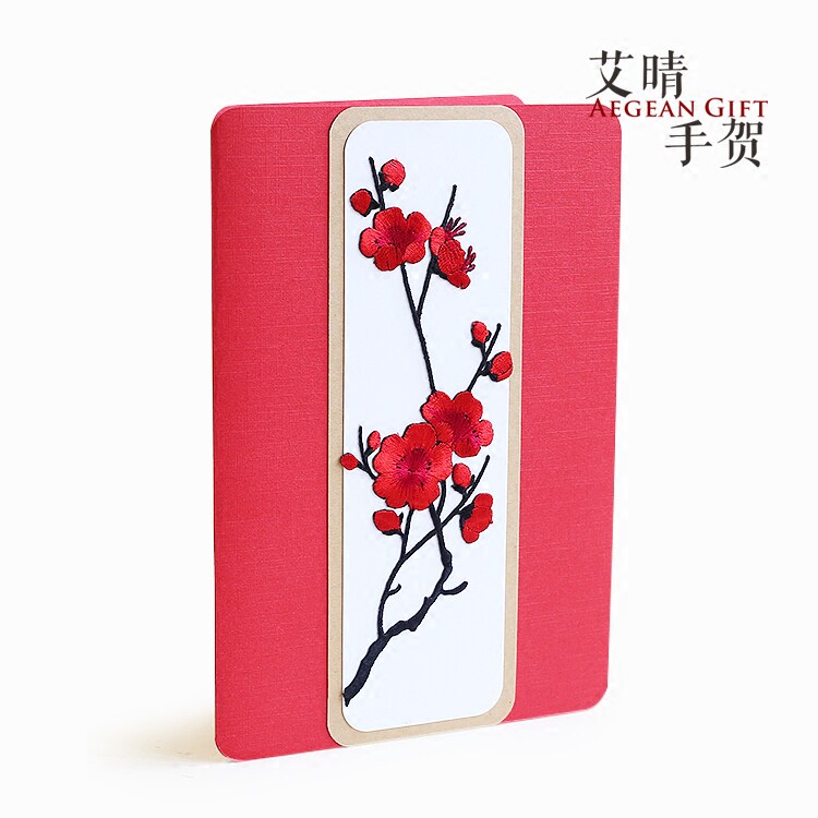 Embroidered plum business greeting card birthday Chinese style card to send men and women elders to lead high-end gifts mother spring Teacher's Day
