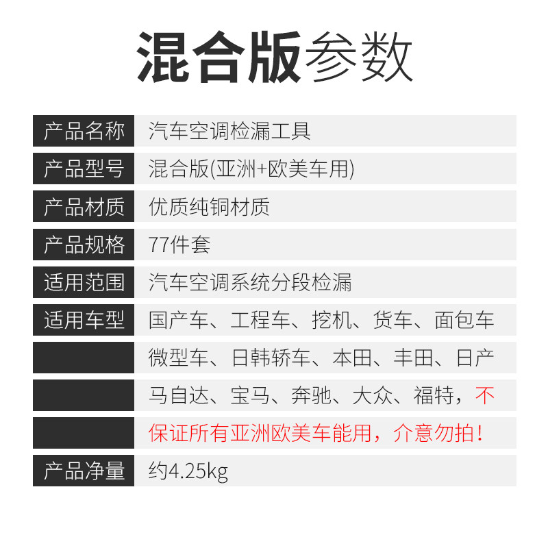 Automobile air conditioner leak detection plug pure copper Asian European and American vehicles with leak detection leak test leak detection leak detection repair tool