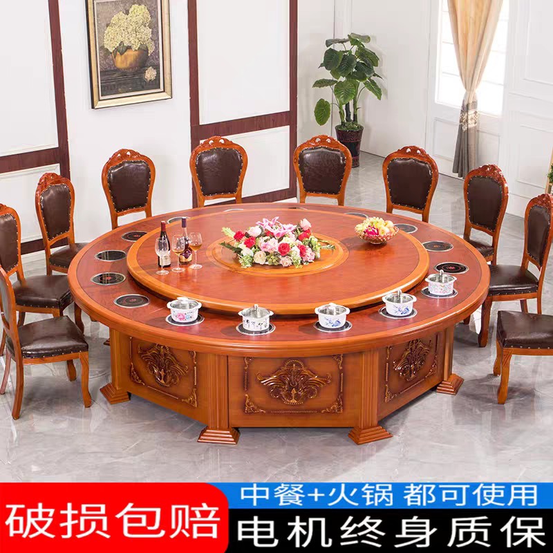 Hot pot table induction cooktop integrated hotel Electric big round table One pot restaurant Home Commercial solid wood table