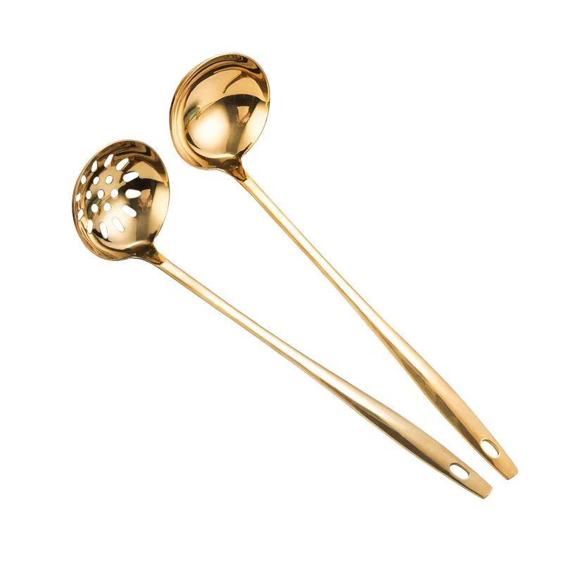 Golden spoon colander set Two-in-one stainless steel long handle spoon dual-use hot pot spoon spoon shelf for dining room