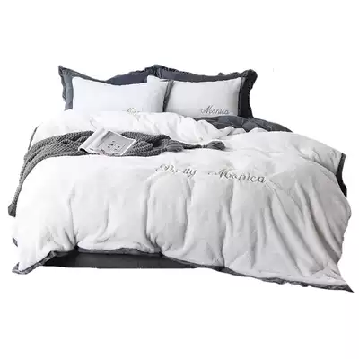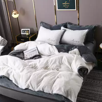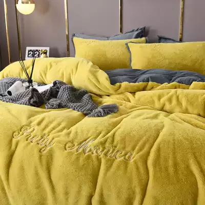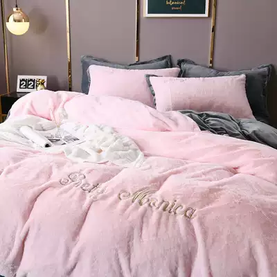 Winter rabbit rabbit velvet four-piece set thickened coral velvet embroidery quilt cover bed single bed Lifalai fluff velvet bedding
