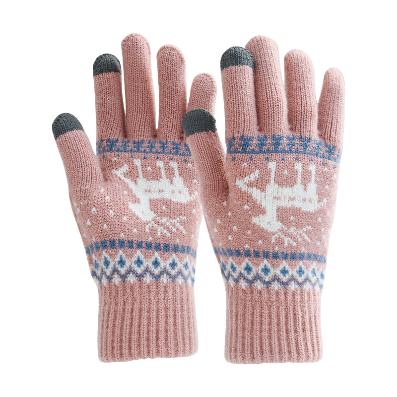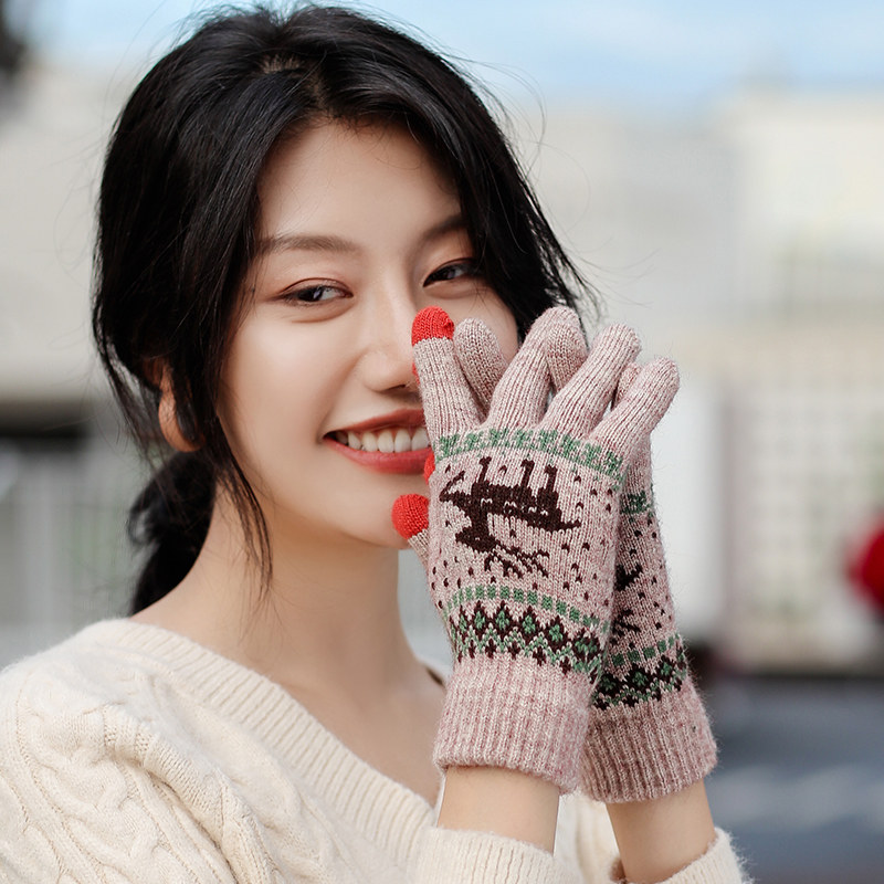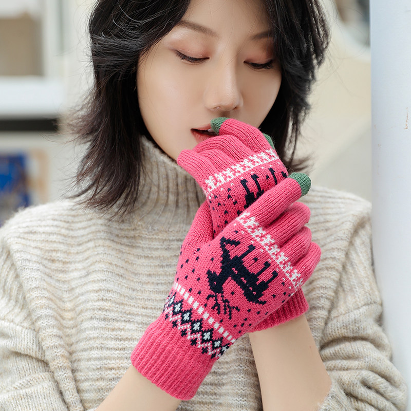 Touch screen gloves Women's winter warm cute Korean version of student cycling thickened Christmas with hands woven wool gloves