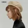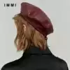 (Designer brand IMMI)Vintage four-color PU drawstring beret painter cap 192HT002X