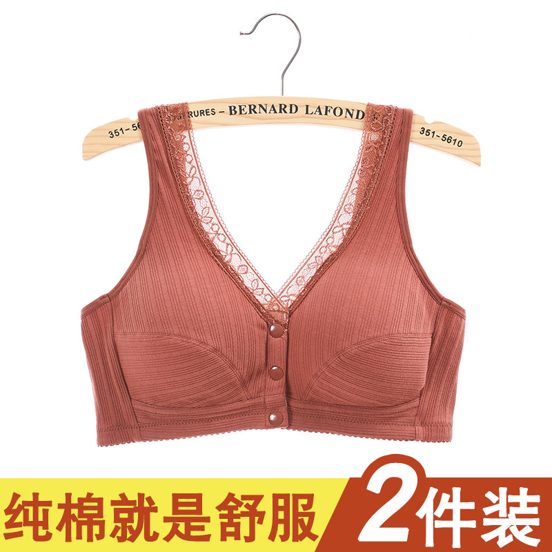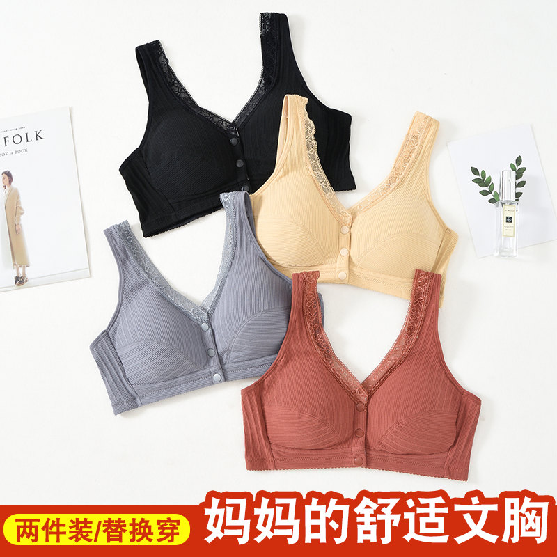 Middle-aged and elderly underwear bra mother front buckle bra old man vest type middle-aged women cotton large size without steel ring