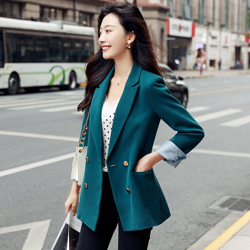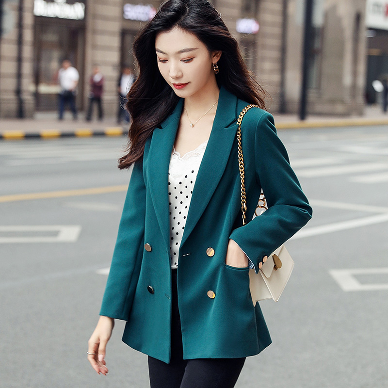 Green small suit jacket female Inn Wind 2021 Spring loaded with new Korean version loose casual 100 hitch long version Western suit