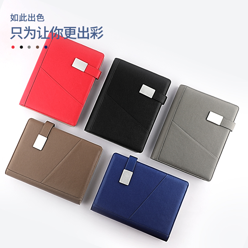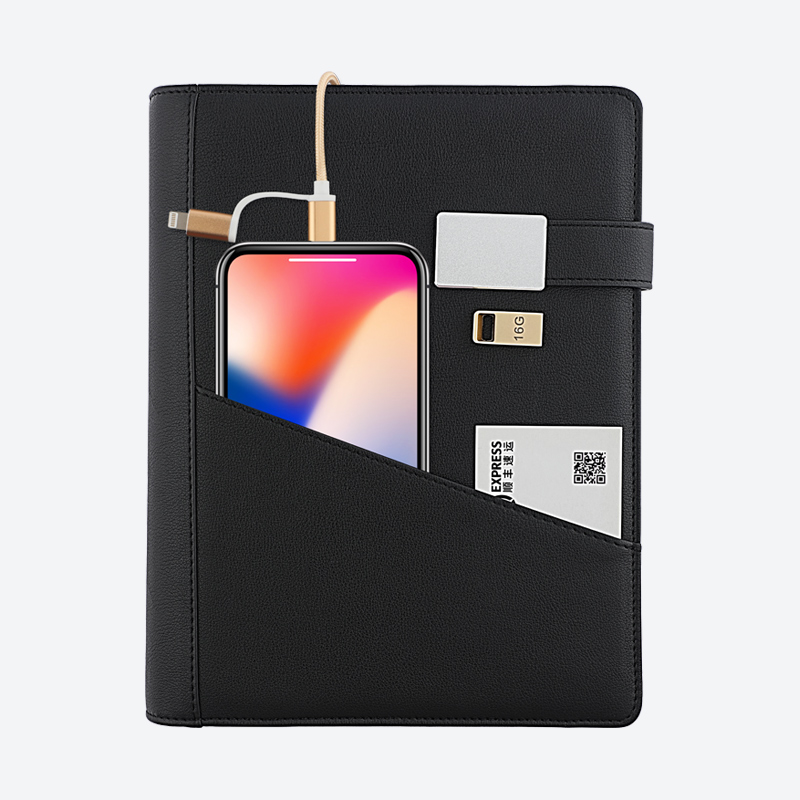High-grade leather multi-function with mobile charging notebook soft leather loose-leaf book pu leather power notepad business office stationery set company notebook custom printing LOGO free lettering