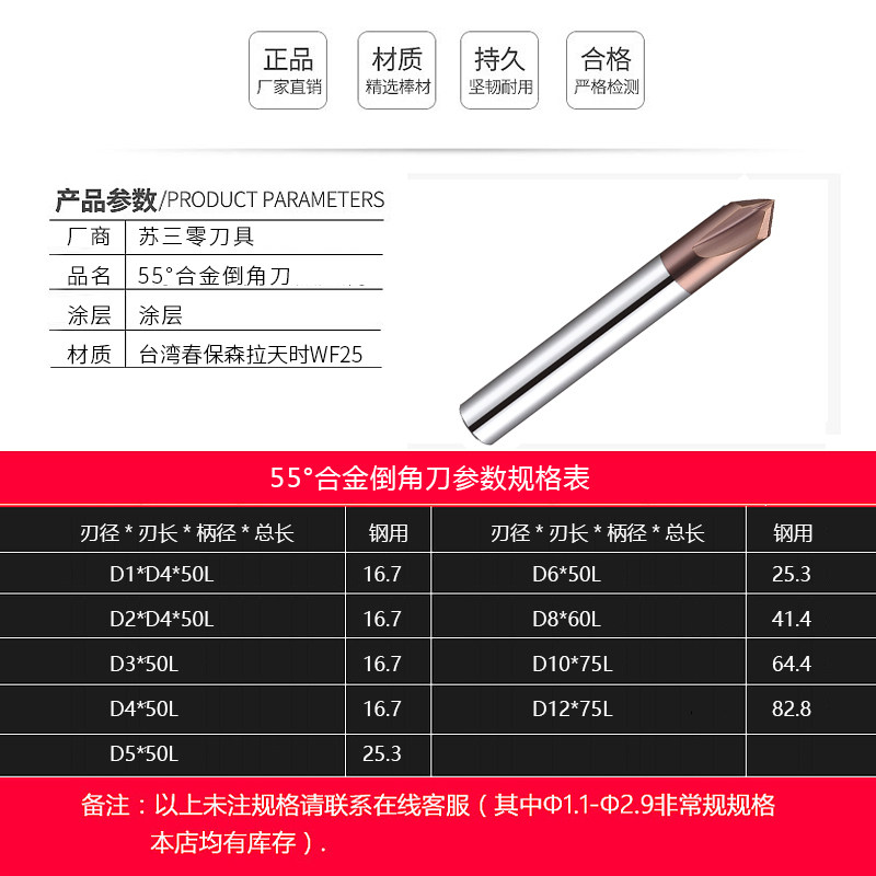 Su Sanzero 55 ° alloy chamfering knife tungsten steel integral hard alloy chamfered milling cutter numerical control machining center