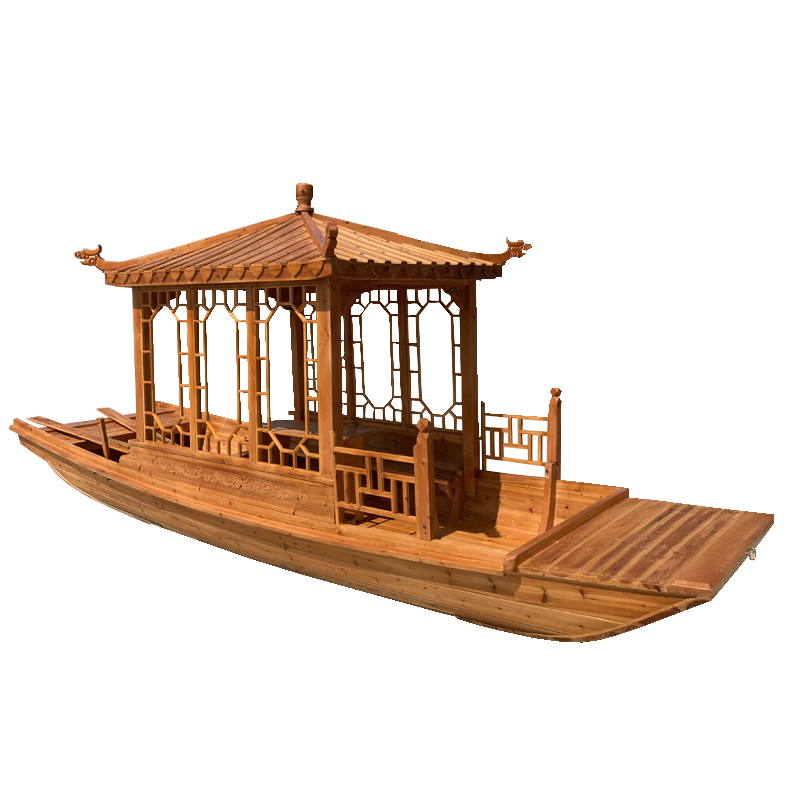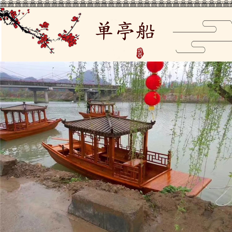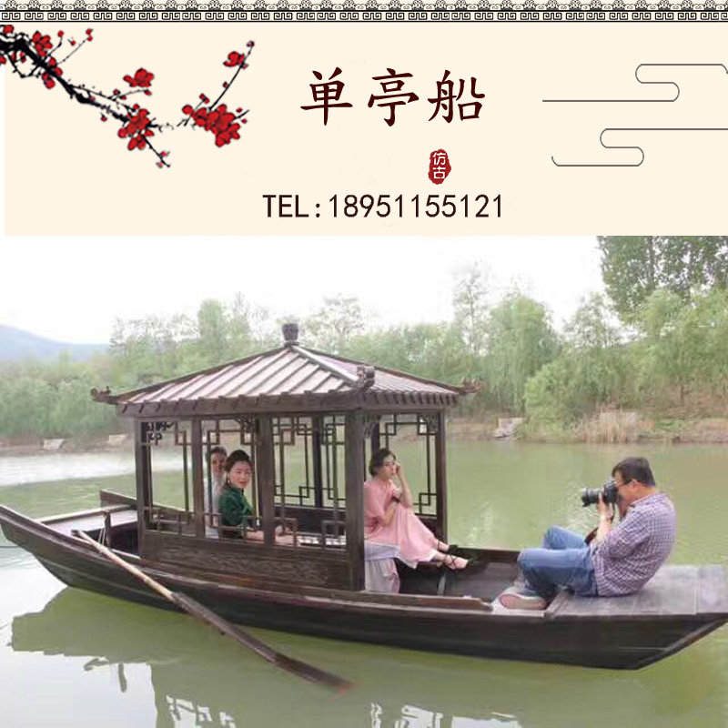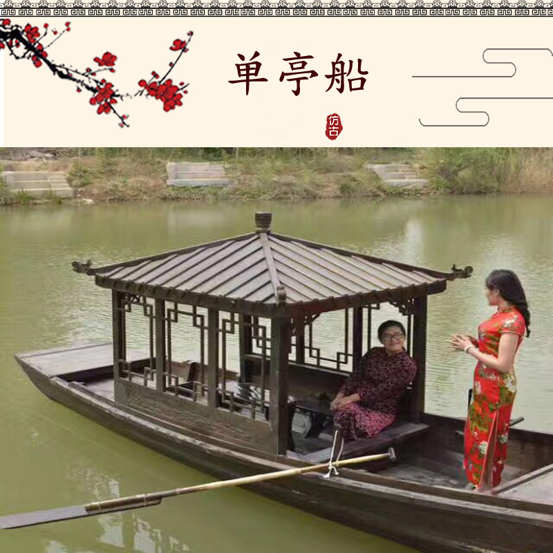 Antique wooden boat fishing boat single pavilion solid wood dining water outdoor sightseeing tourism painting boat hand rowing single canopy decoration