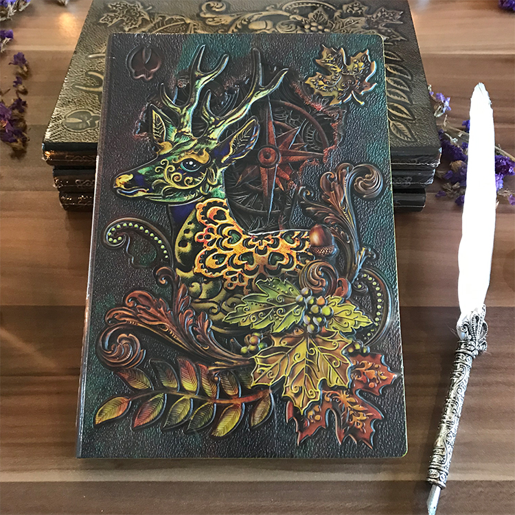 Retro Leather Notebook Business Student Handbook Diary Elk European Embossed Retro Notepad A5