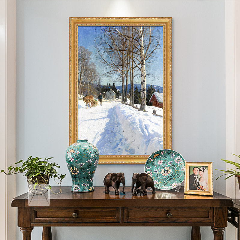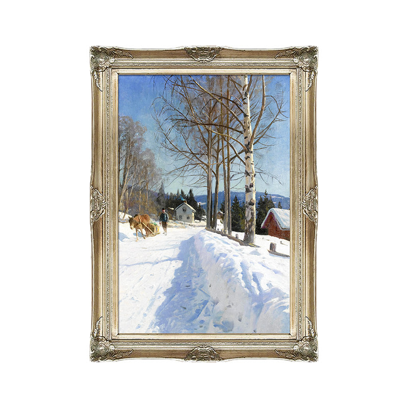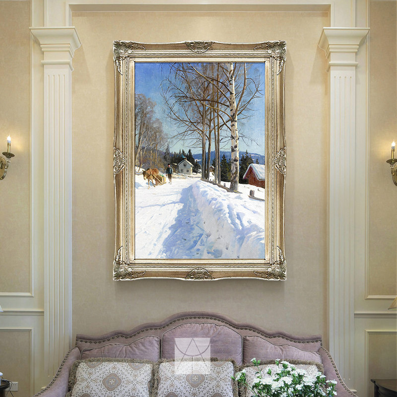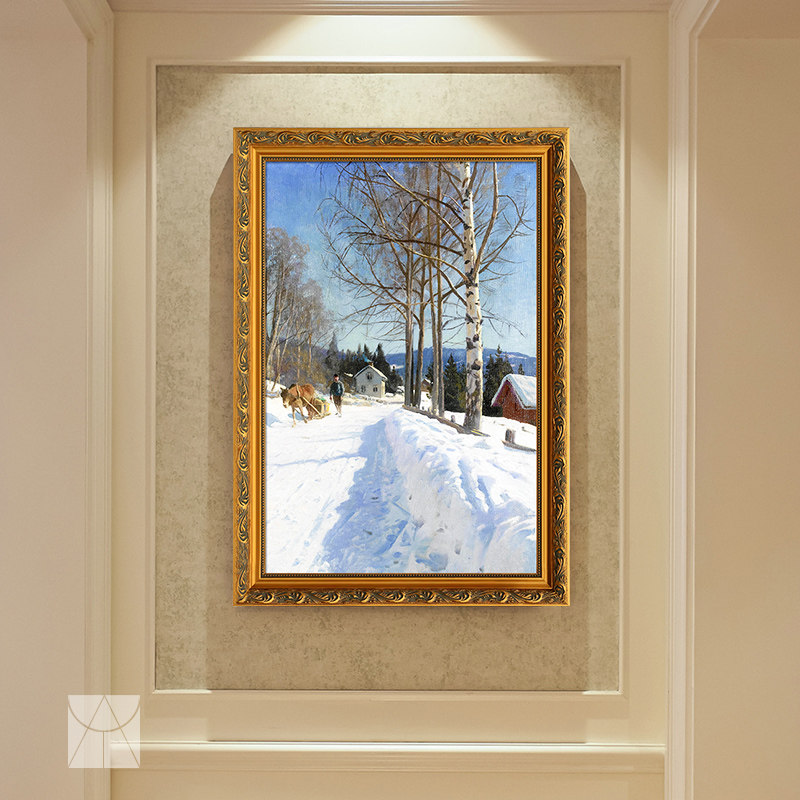 Aresus European Porch Oil Painting Pure Hand Painting of Handmade Painting of the Pathway Levian Snow Scene