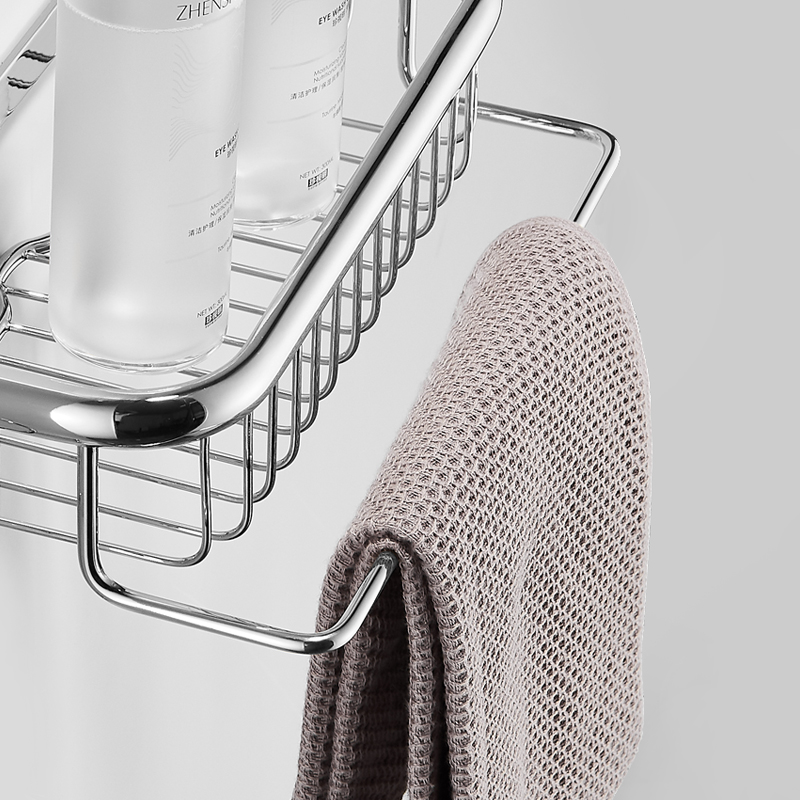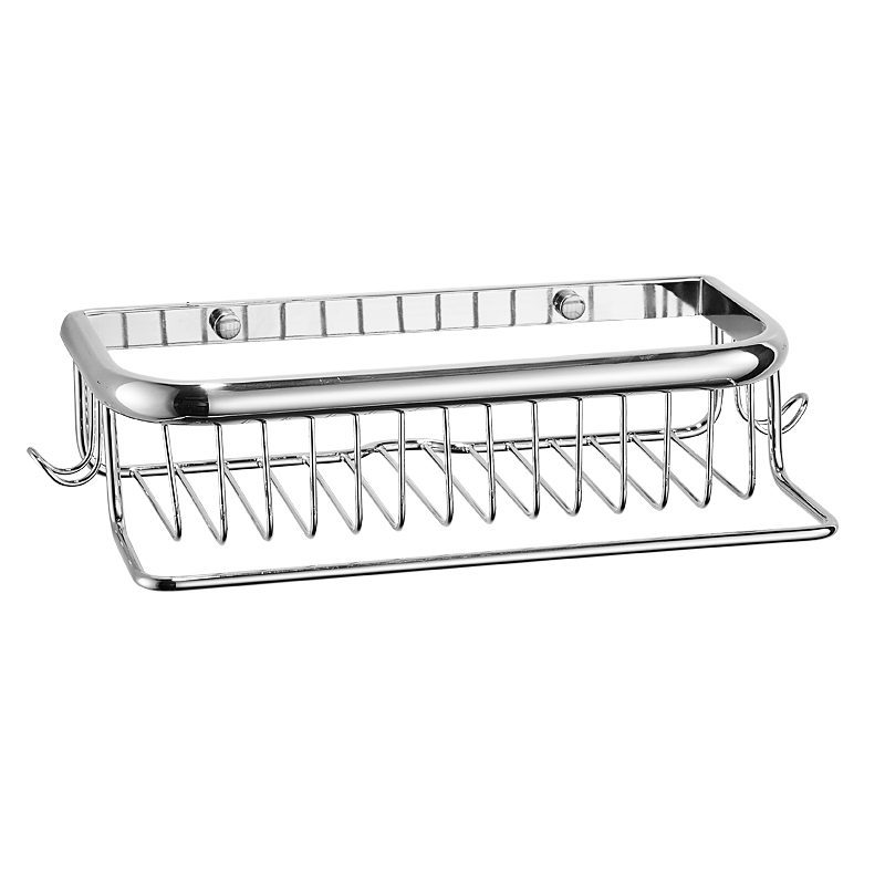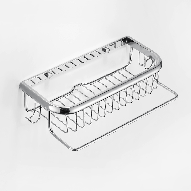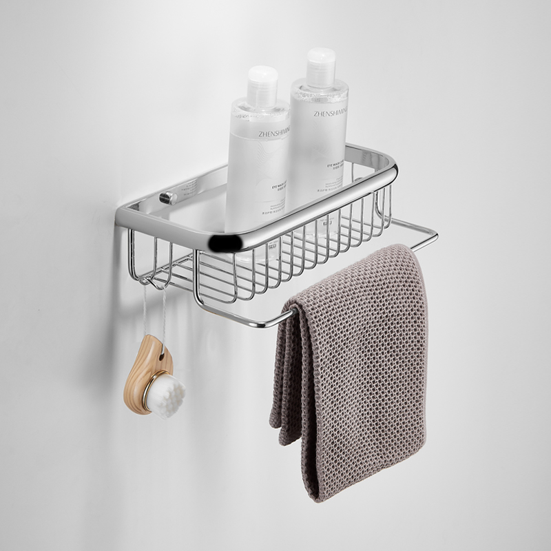 Makeup Room Full Copper Multifunction Storage Basket Wall-mounted Bathroom Copper Bath Shelve With Hook Hanging Rod