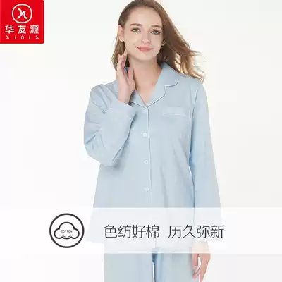 Hua Youyuan Spring and Summer Women's Pajamas Cotton Printed Lapel Long Sleeve Simple Loose Home Clothing Pajama Pants Two Piece Set