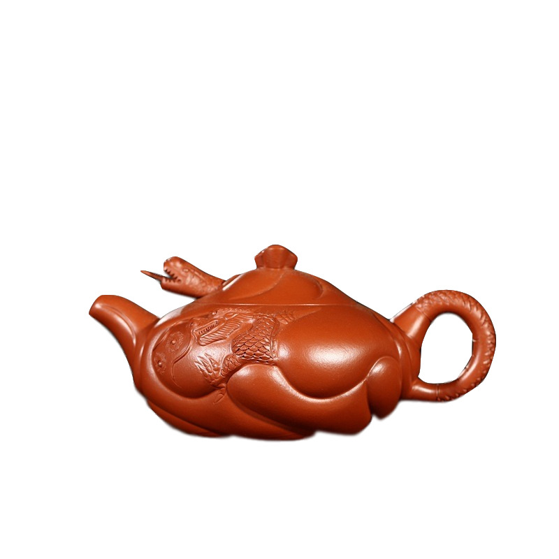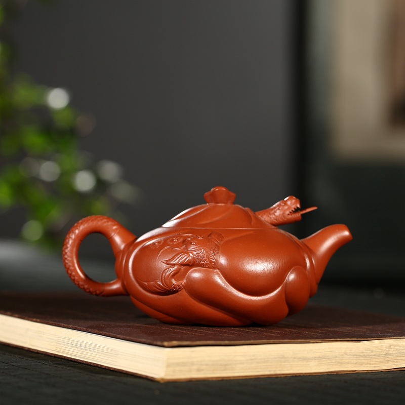 Original mine Yixing famous purple sand teapot wrinkled skin red mud fish dragon pot 240cc teapot collection tea set