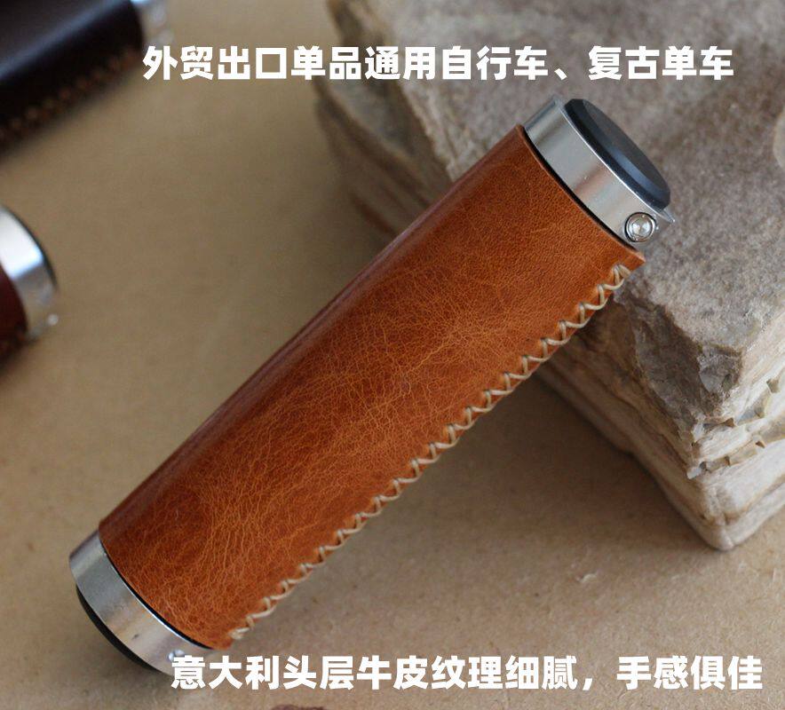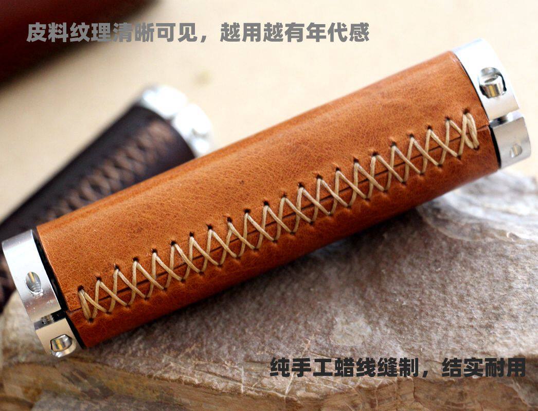 Single light brown first layer cowhide retro bicycle folding cloth car BROMPTON handlebar cover 70-130mm