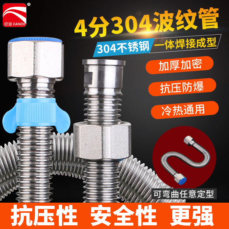 304 stainless steel bellows water heater connected hot and cold 4 water inlet hose heat-resistant freeze high-pressure metal explosion-proof pipe